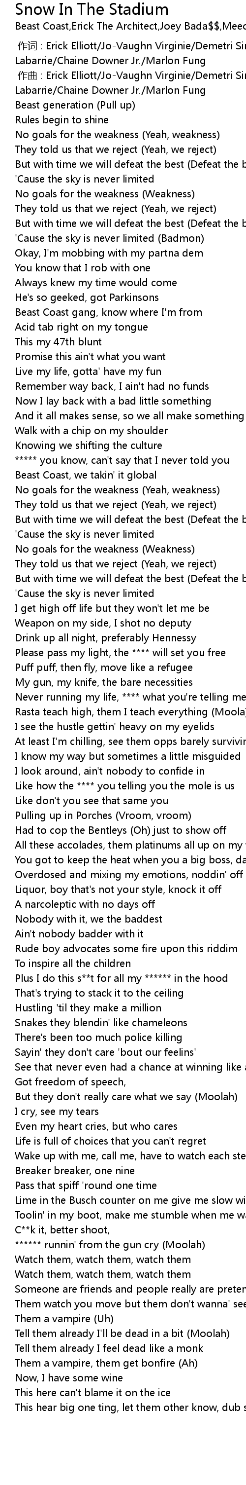 | [01:11.18] | Beast Coast, we takin' it global |