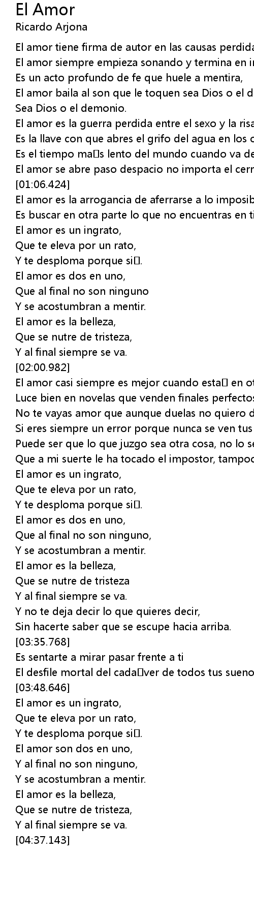 | [00:27.299] | El amor baila al son que le toquen sea Dios o el demonio |