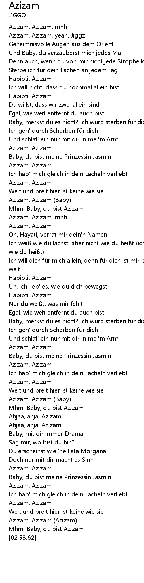 | [02:09.68] | Mhm, Baby, du bist Azizam |