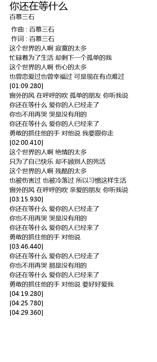 | [03:46.770] | 你还在等什么 爱你的人已经走了 |