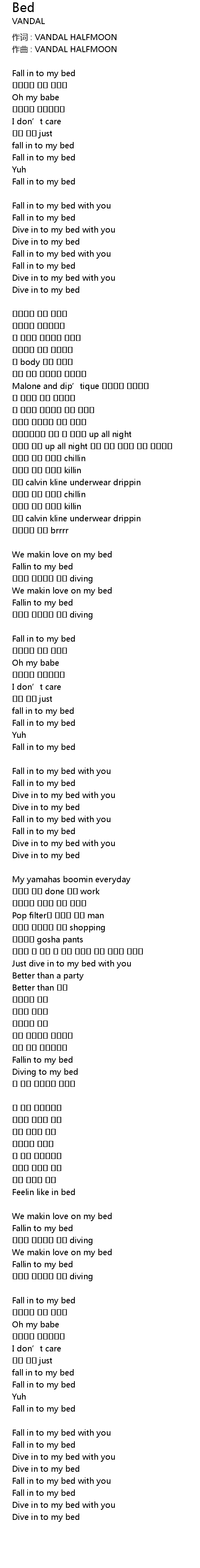| Song | Bed |