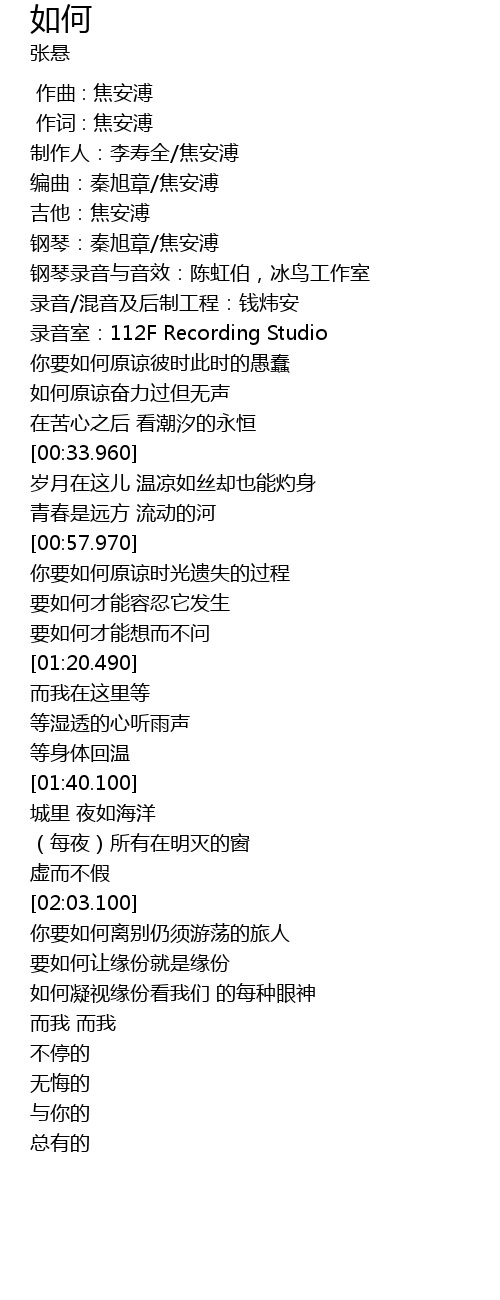 | [00:00.00] | 作曲 : 焦安溥 |