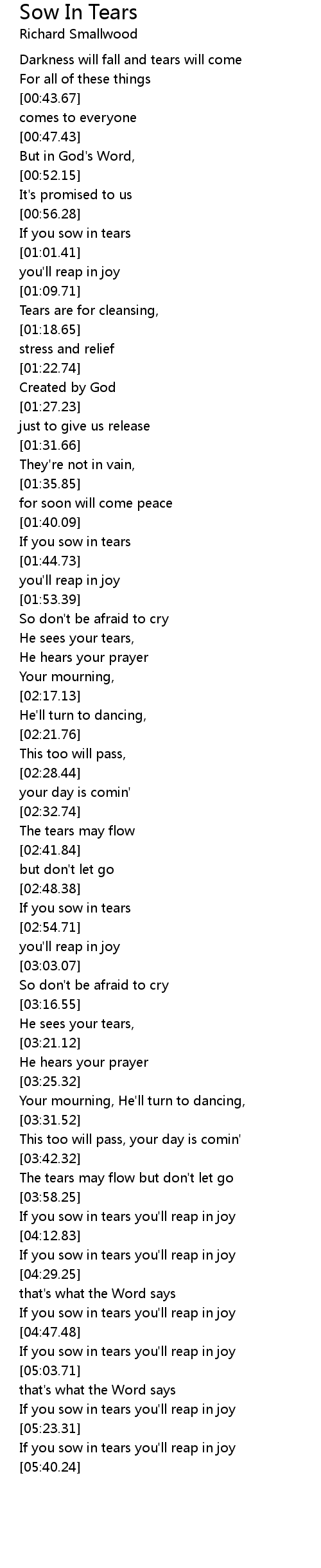 If you sow in tears you'll reap in joy |