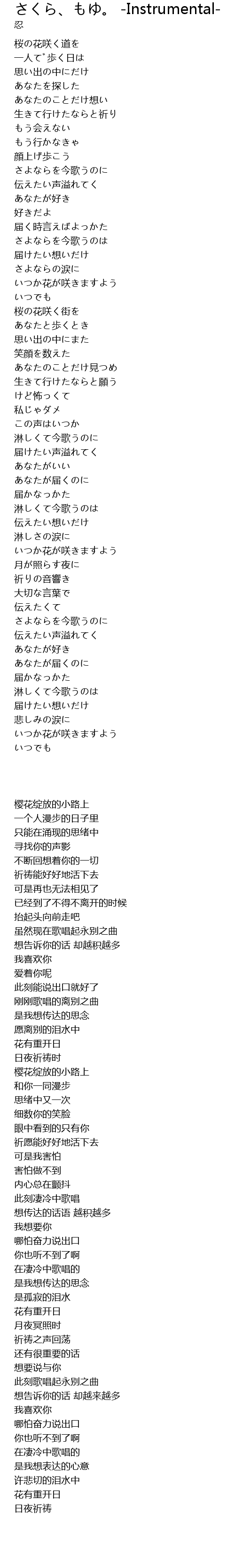 | Song | さくら、もゆ。 -Instrumental- |
