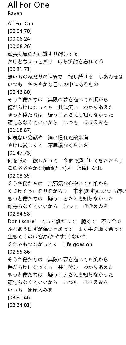 | [03:19.70] | 頑張らなくていいから いつも ほほえみを |