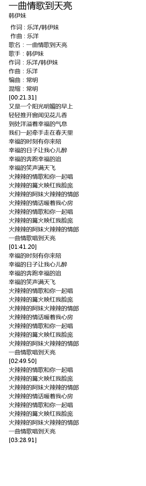 | [00:00.000] | 作词 : 乐洋/韩伊妹 |