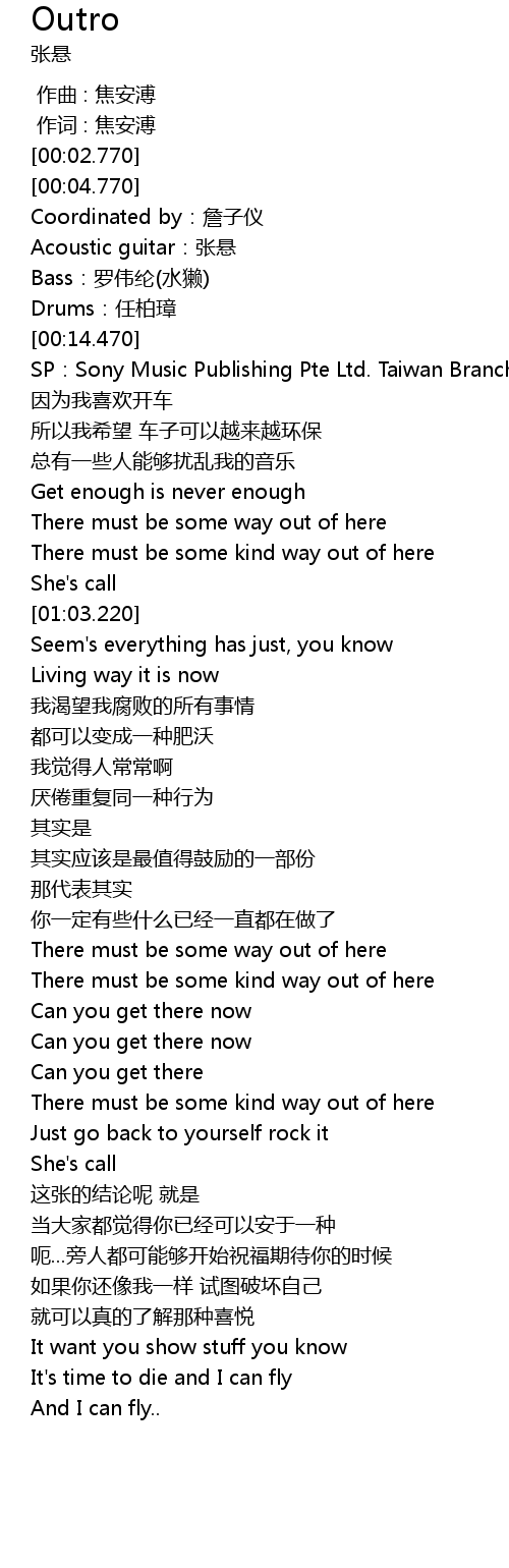 | [00:08.770] | Acoustic guitar: zhāng xuán |