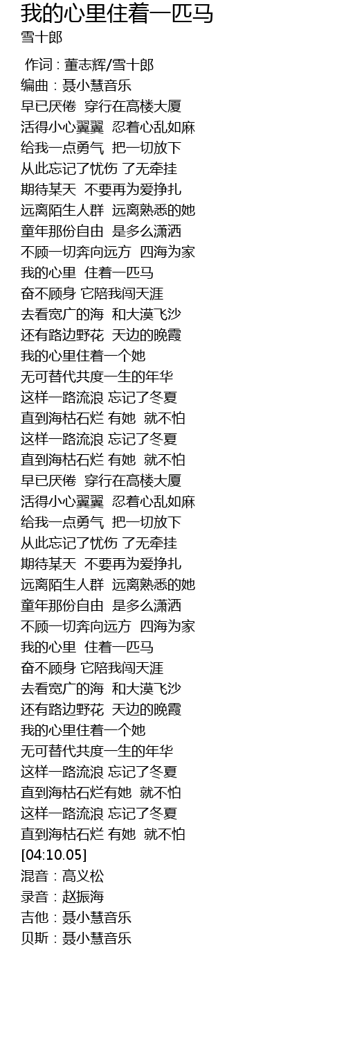 | [03:11.59] | 我的心里 住着一匹马 |