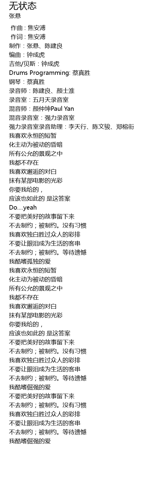 | [00:06.920] | Drums Programming: cai zhen sheng |