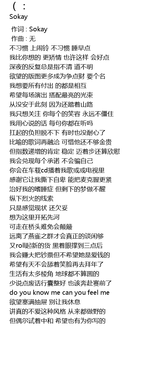 | [00:00.000] | 作词 : Sokay |