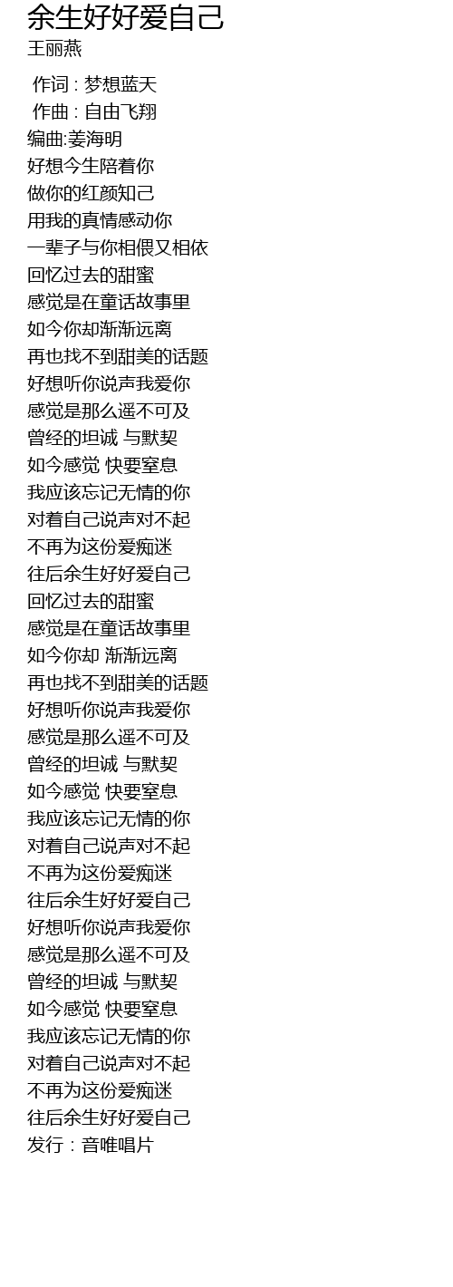 | [04:11.84] | wǎng hòu yú shēng hǎo hǎo ài zì jǐ |