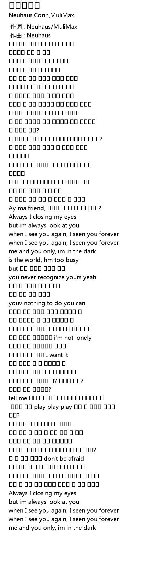 | [00:00.000] | 作词 : Neuhaus/MuliMax |