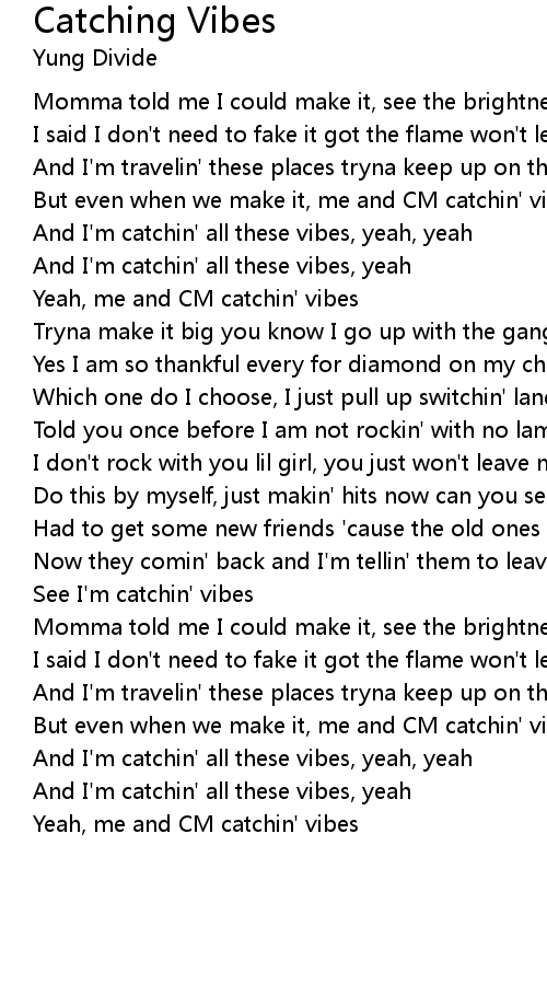 And I'm catchin' all these vibes, yeah |