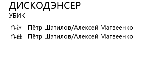 | [00:00.000] | 作曲 : Пётр Шатилов/Алексей Матвеенко |