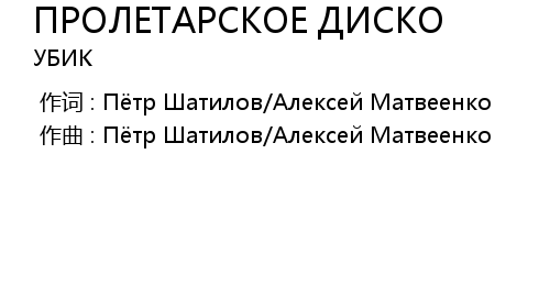 | Song | ПРОЛЕТАРСКОЕ ДИСКО |