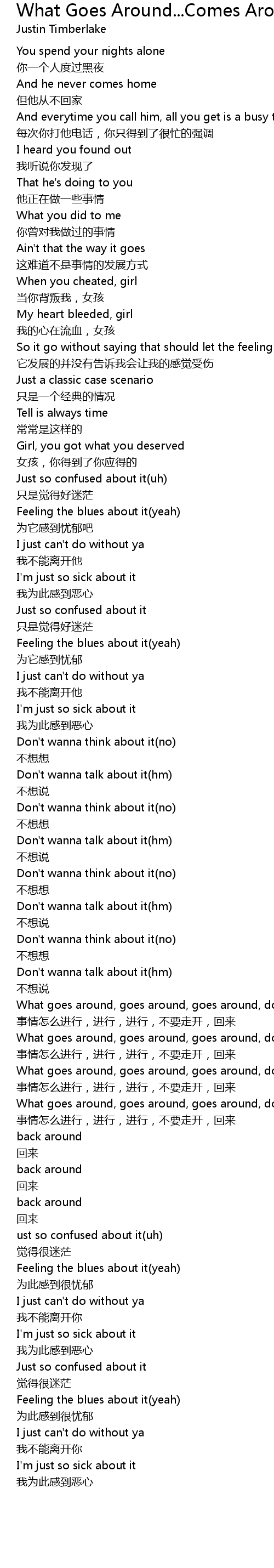 | What goes around, goes around, goes around, don' t go away, back around | |