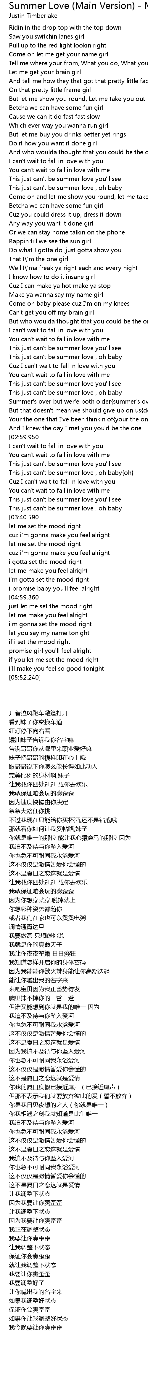 | [03:15.680] | This just can't be summer love , oh baby{oh} |