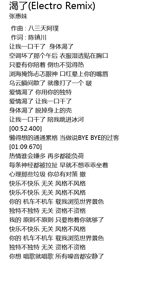 | [00:12.660] | 让我一口干了 身体渴了 |