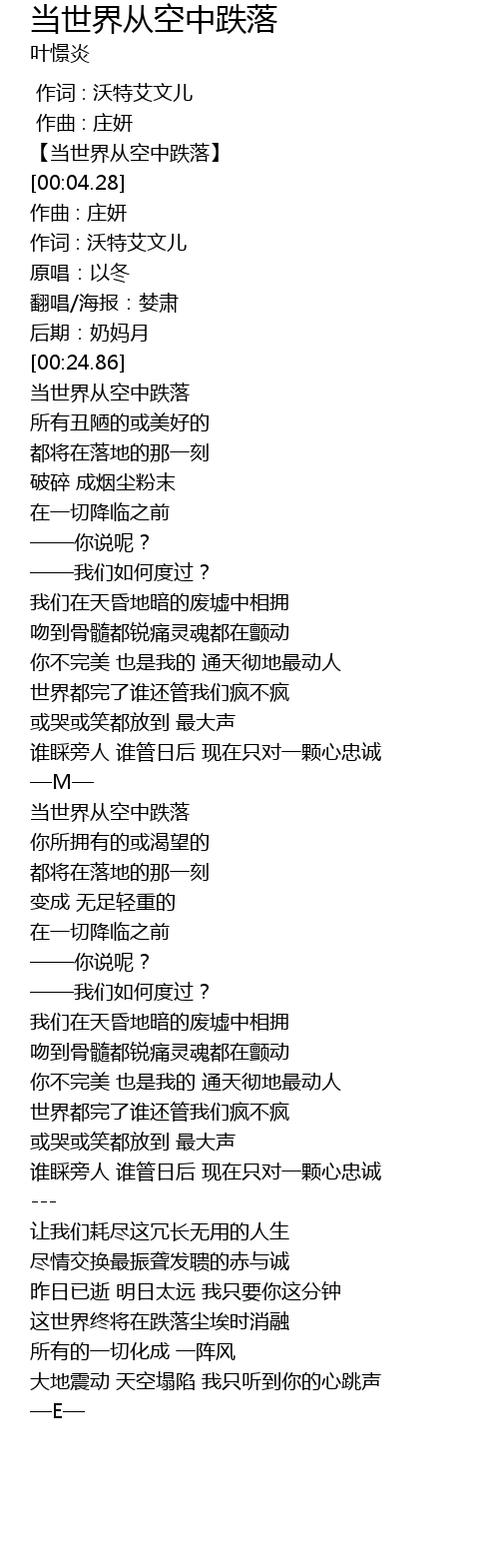 | [00:00.85] | dang shi jie cong kong zhong die luo |