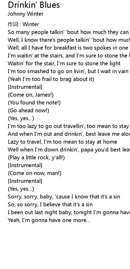 | Well when I' m down drinkin', papa you' d best leave me alone | |