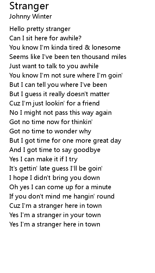 Cuz I'm a stranger here in town |