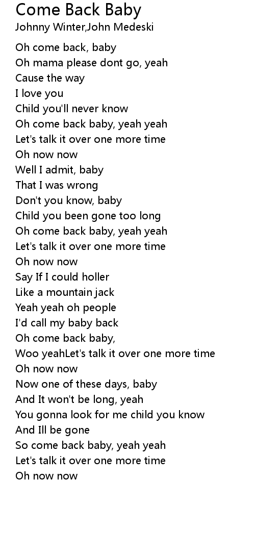 Oh come back, baby |