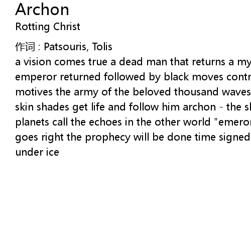 | a vision comes true a dead man that returns a mythic horse pronounces him as an emperor returned followed by black moves contrast the white horse aliens' dark motives the army of the beloved thousand waves swallow him dance under the grey skin shades get life and follow him archon - the shadows call archon - the planets call the echoes in the other world "emeron, i'm over all" the chapter goes right the prophecy will be done time signed the last king who's buried under ice |