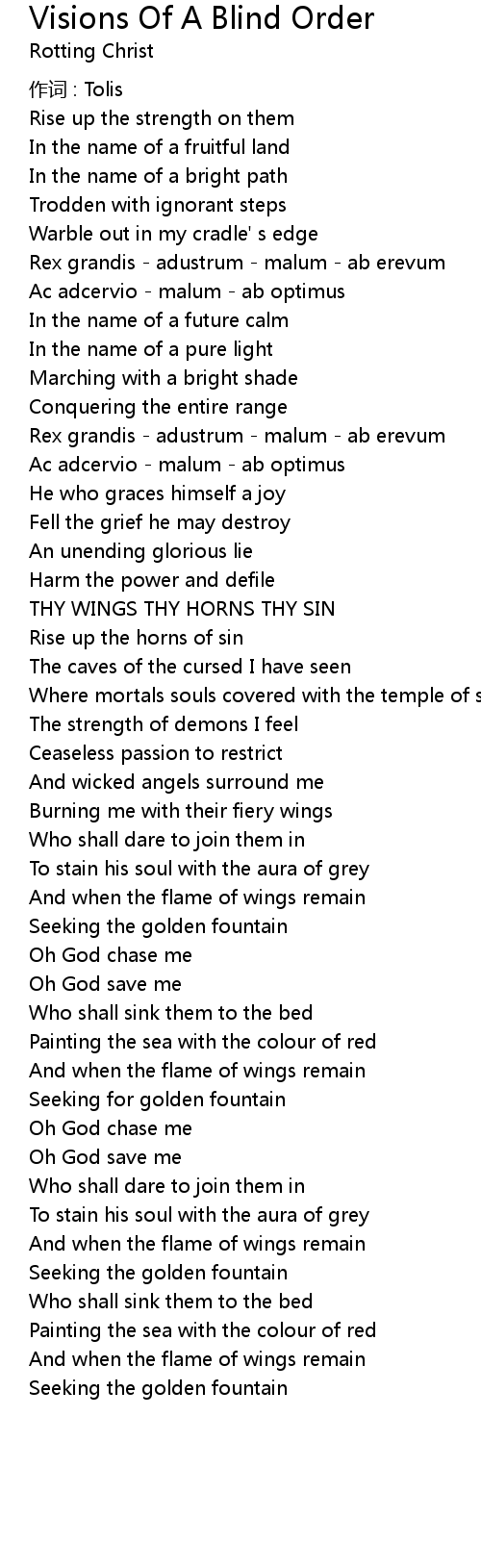 | Song | Visions Of A Blind Order |