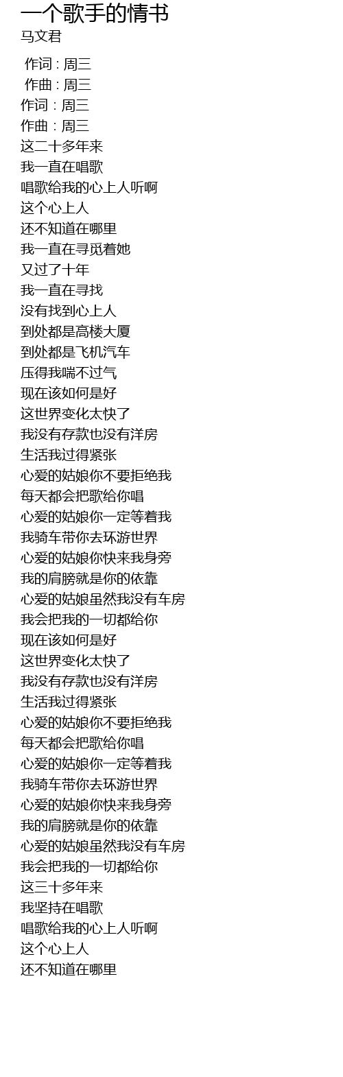 | [00:24.945] | chàng gē gěi wǒ de xīn shàng rén tīng a |