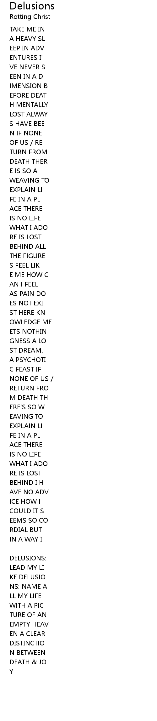DELUSIONS: |