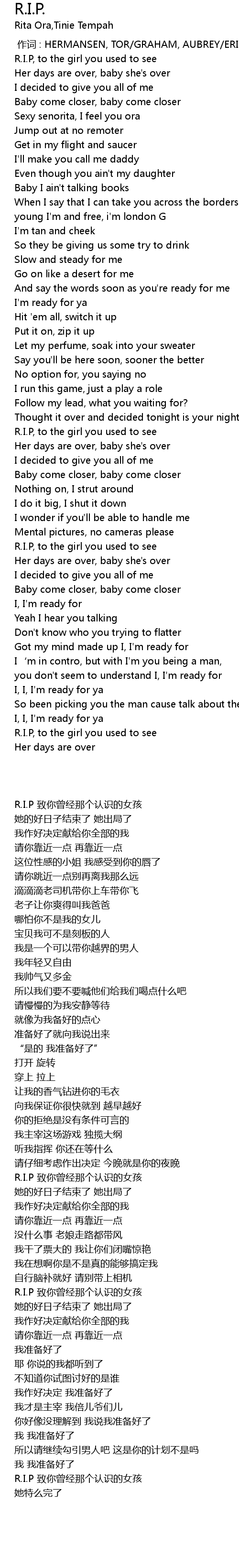 | [03:37.650] | R. I. P, to the girl you used to see |