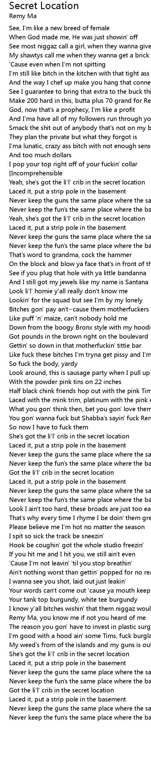 Got the li'l' crib in the secret location |