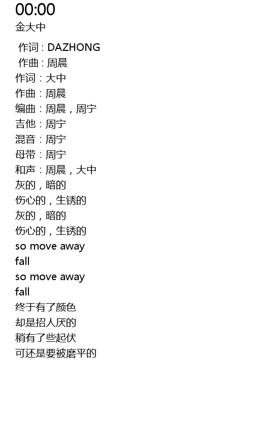 | [00:14.685] | he sheng: zhou chen, da zhong |