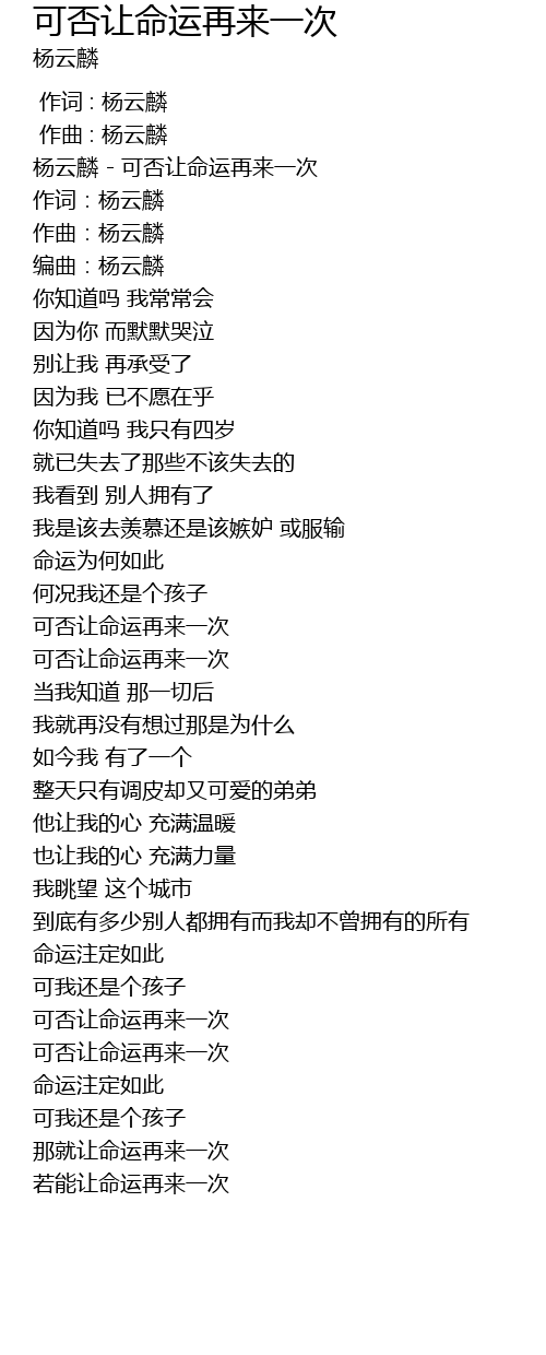 | [00:12.196] | 杨云麟 - 可否让命运再来一次 |