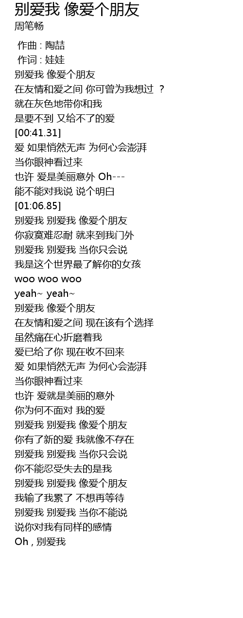 | [01:08.35] | 别爱我 别爱我 像爱个朋友 |