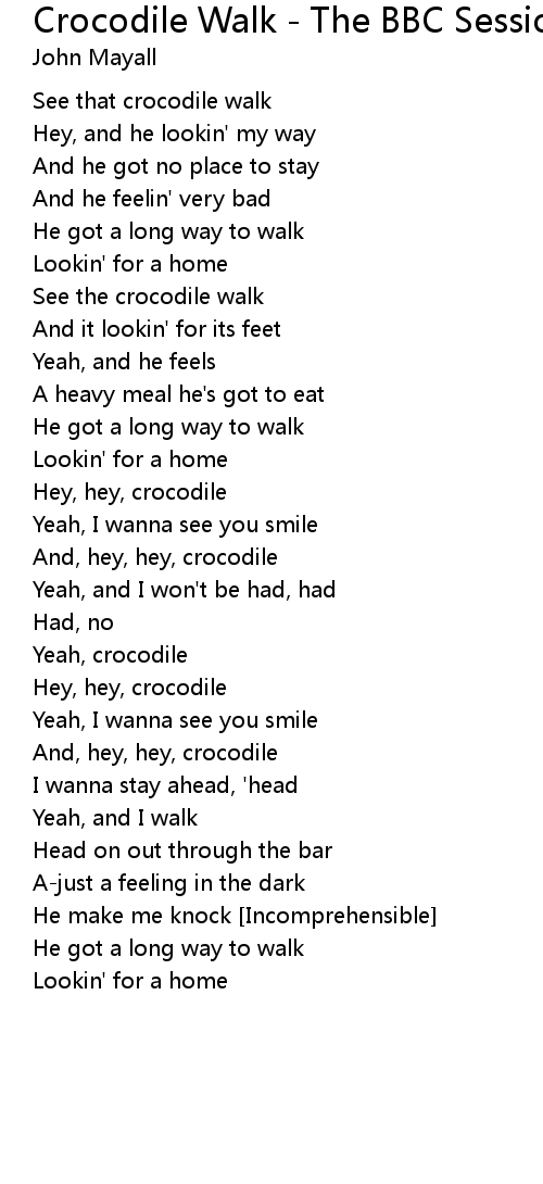 Crocodile Walk - The BBC Sessions (Sat Club 26/4/65) Lyrics
