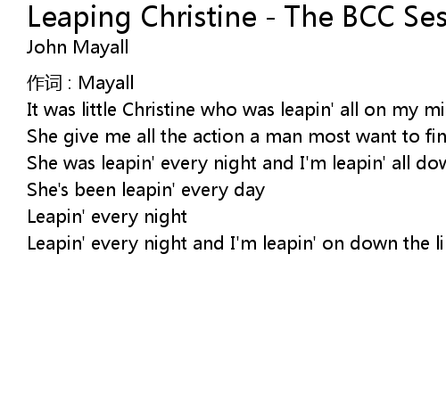 | Song | Leaping Christine - The BCC Sessions (Sat Club 23/1/67) |