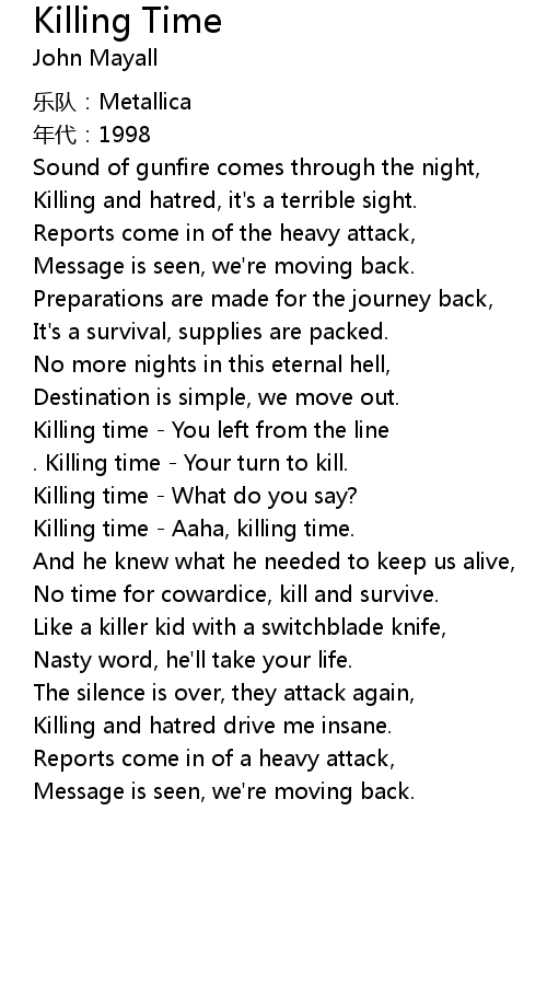 | Song | Killing Time |