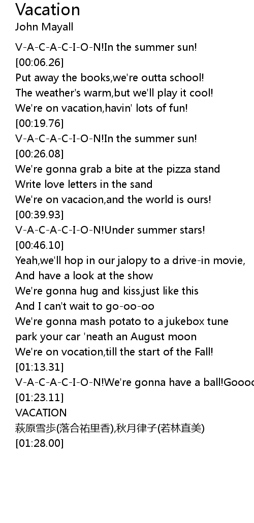 | [01:24.00] | VACATION |