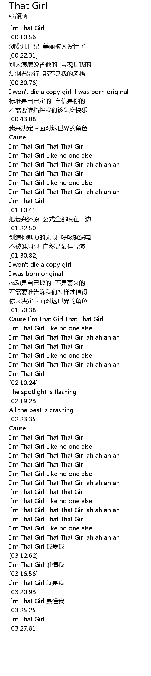 | [03:18.12] | I m That Girl jiù shì wǒ |