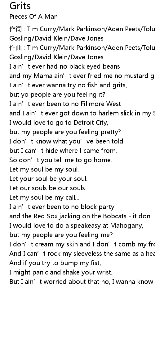 | and my Mama ain' t ever fried me no mustard greens. | |
