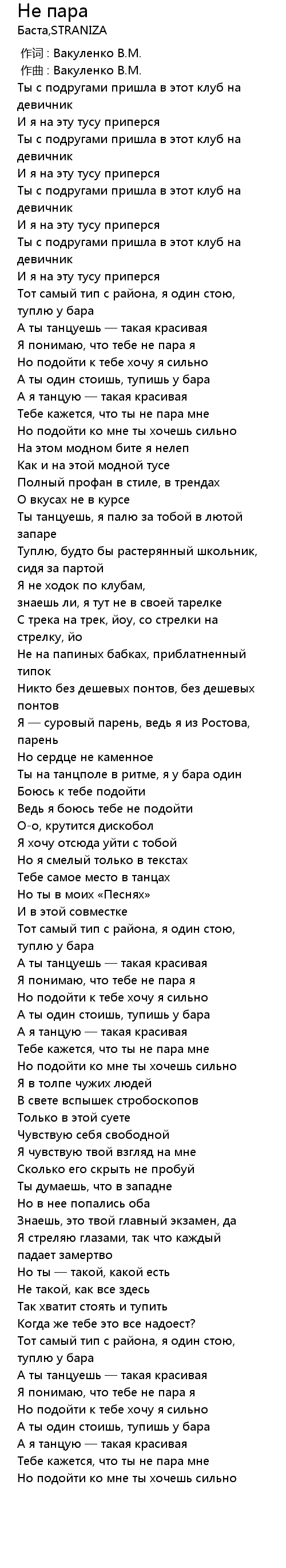 Не пара  Lyrics