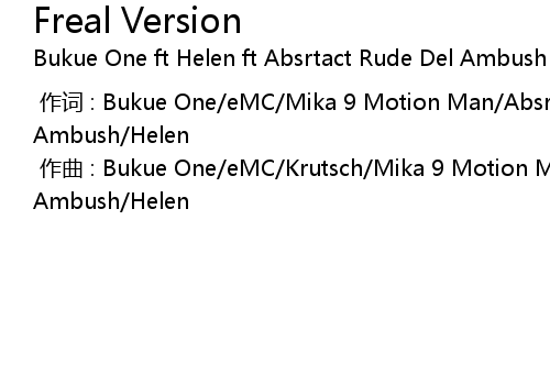 | [00:00.000] | zuò qǔ : Bukue One eMC Krutsch Mika 9 Motion Man Absrtact Rude Del Ambush Helen |