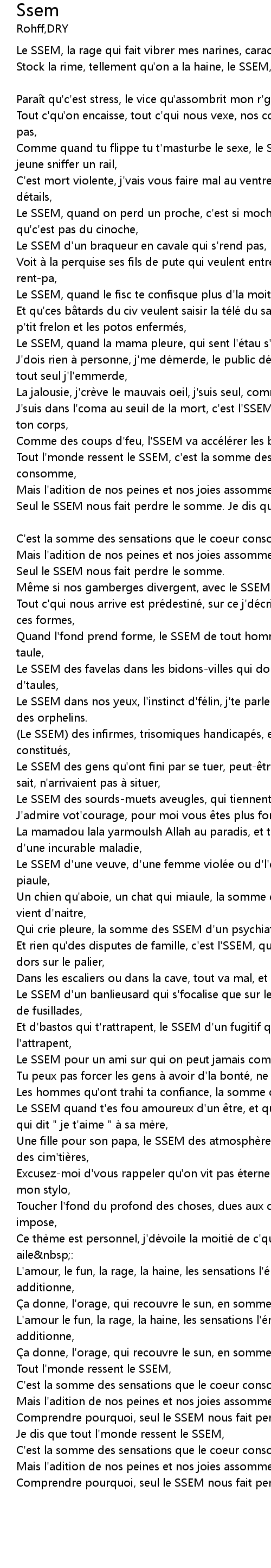 | Tout c' qui nous arrive est pré destiné, sur ce j' dé cris le SSEM dans toutes ces formes, | |