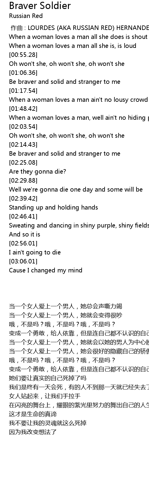 | Song | Braver Soldier |