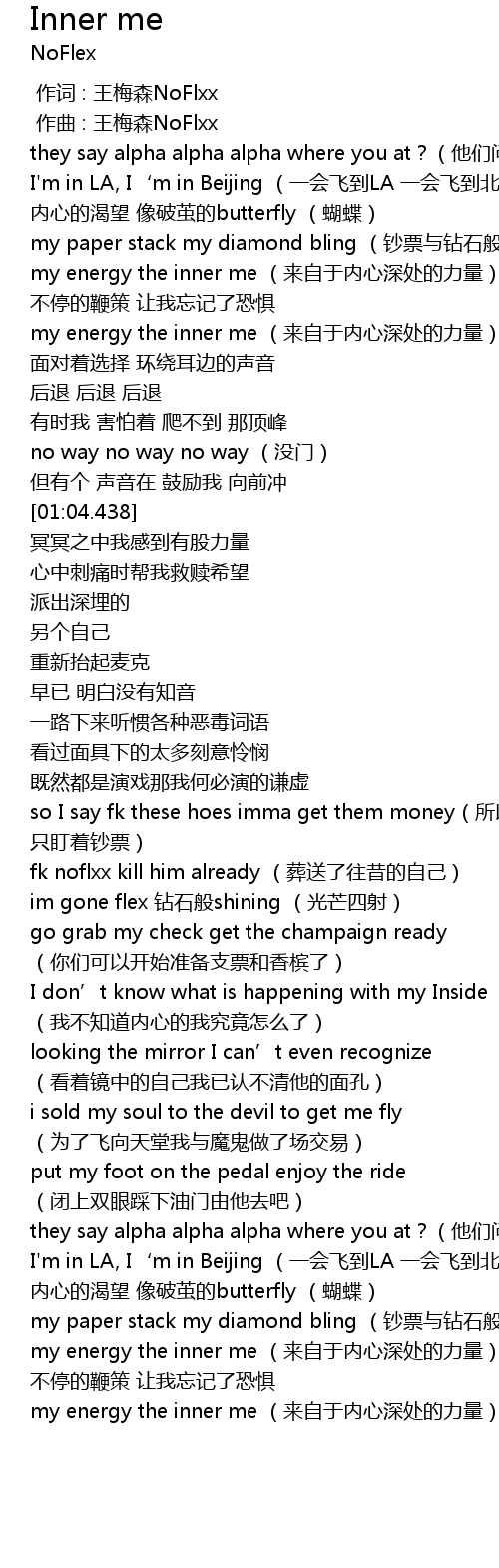| [01:56.681] | they say alpha alpha alpha where you at?(他们问我在哪里) |