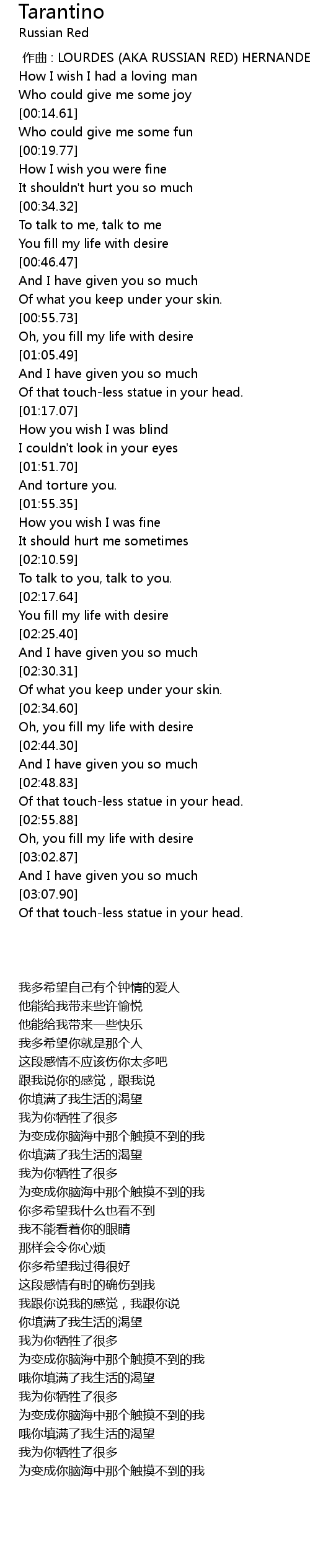 | [00:00.00] | 作曲 : LOURDES (AKA RUSSIAN RED) HERNANDEZ GONZALEZ |