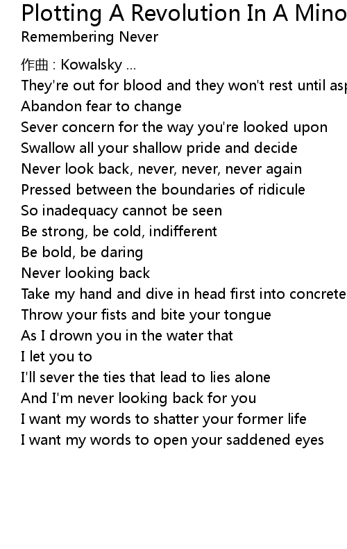 | Song | Plotting A Revolution In A Minor |