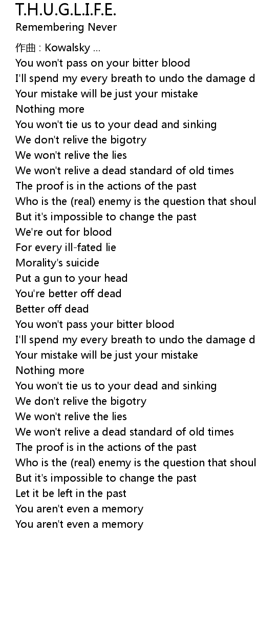 | Song | T.H.U.G.L.I.F.E. |