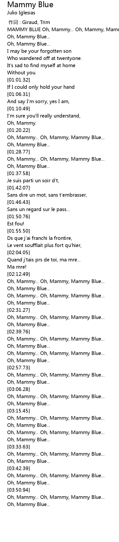 | [01:29.83] | Oh, Mammy... Oh, Mammy, Mammy Blue... |